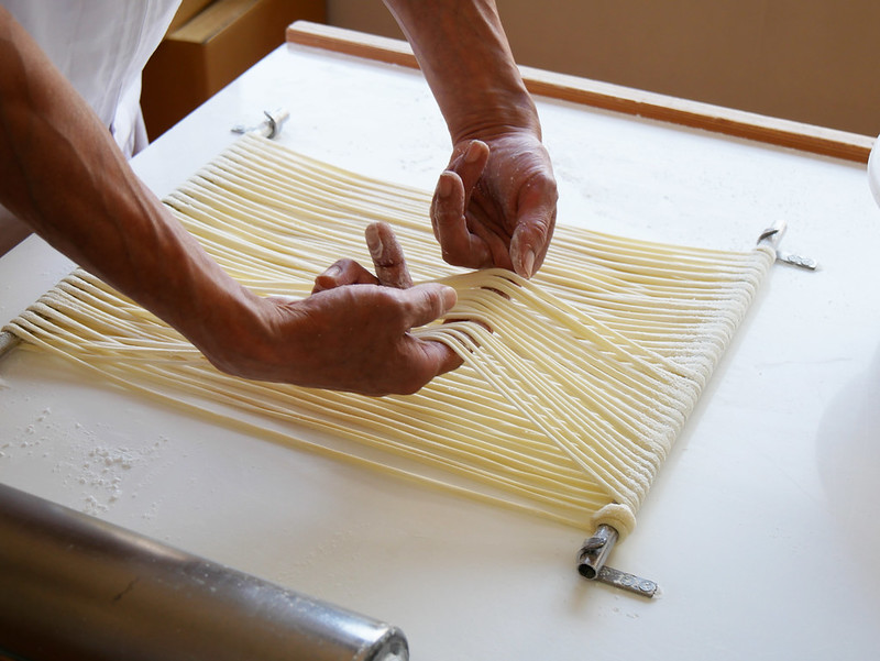 Another story tells us that during the Nara period, a Japanese envoy was introduced to 14 different kinds of confections while he was in China. One of them was called sakube, also known as muginawa according to the ancient dictionary, the Shinsen Jikyō. Muginawa is the origin of many Japanese noodles. But the muginawa mentioned in the Shinsen Jikyō was made with both wheat and rice flour.